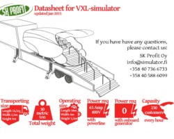 - Total weight for the VXL-simulator and lorry is 30 metric tons (30 000 kg), capasity 230 customers per hour.